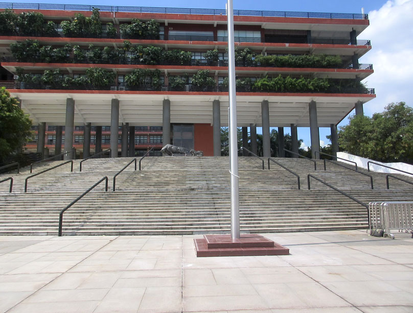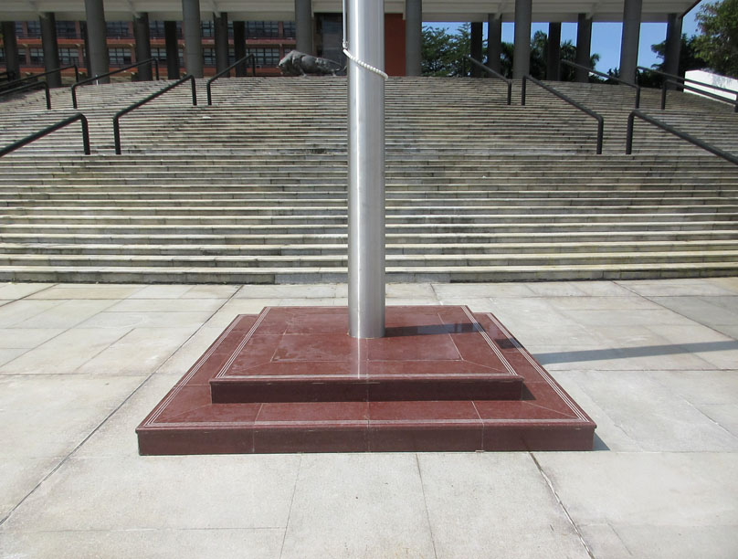 | 广美正门广场看到专门新建了一个国旗杆塔座,远看就已觉高耸挺拔雄壮了 | ||||||