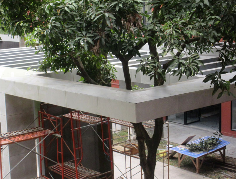 南北阶梯教室之间加装的架构,弄好是这样的吗,相比10多天前看到的酷炫&锋利感,怎么现在看到外包裹了一层是跟原来旧的一样的附着,感觉瞬间变普通了,10多天前看到的视效以为就是最终样,看来是不是太包裹太饱满的未必是最佳展现效果 现场听到说还要油一层漆以显新,但感觉现在看就很普通和没有视觉冲击及眼前一亮,涂漆后想必也不会太出彩吧 那时候看到的比较“裸露”的结构视效不香吗 http://www.dxczx.com/gz/gafa/gafa_js_xx.php?id=76