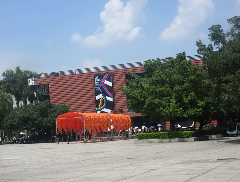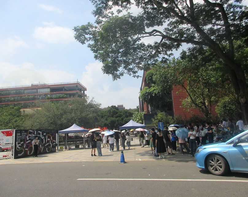 今天看到,似乎美术馆正门外还专门加了个遮阳廊伞&挡棚,应该是太阳确实太晒了