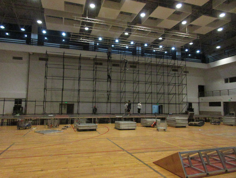 | 广美70周年校庆主会场-大学城校区体育馆内外 傍晚时分还在加紧布场中 | ||||||