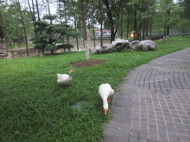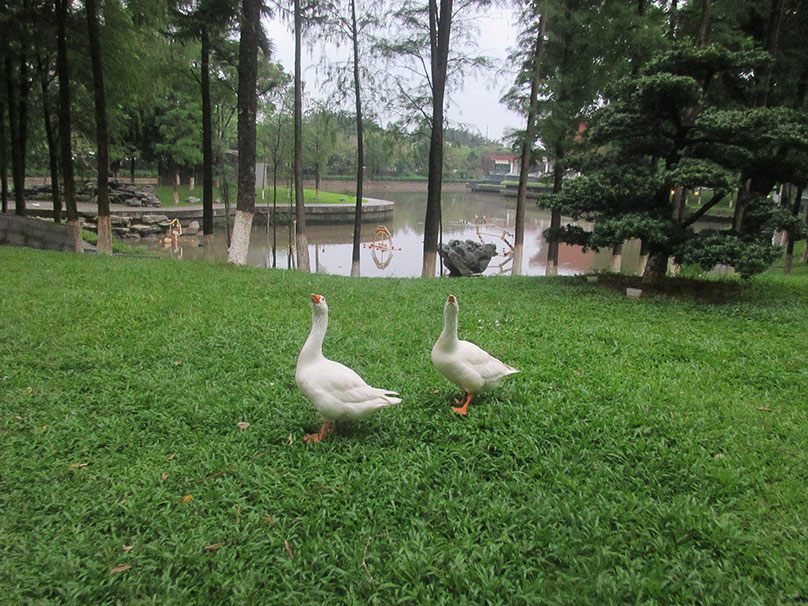 | 广美东湖边草地里这几只大白鹅还是鸭等的是不是已经长大了 有两个都会追着人跑了 | ||||||