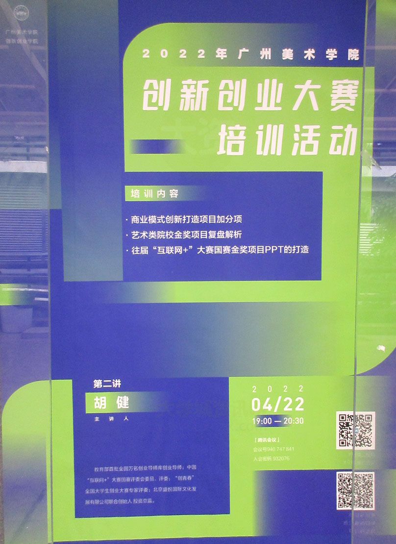 | 2022年广州美术学院创新创业大赛培训活动 第二讲 2022.04.22周五晚19点-20点30分 线上 | ||||||