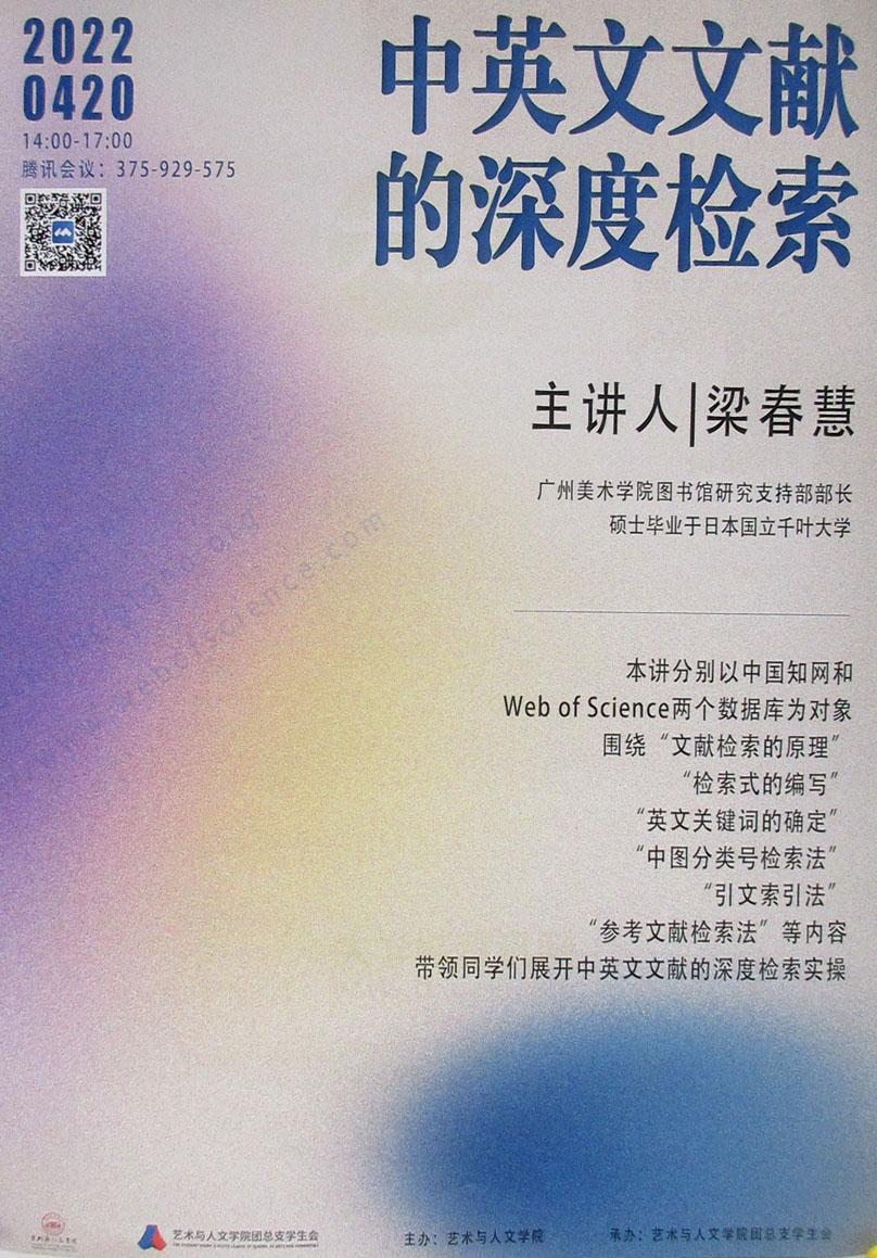 | 中英文文献的深度检索讲座 2022.04.20周三下午14点-17点 线上 | ||||||