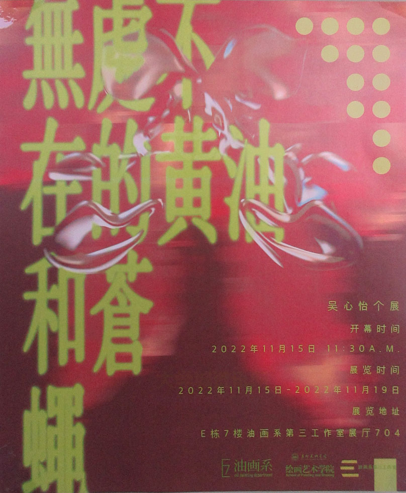 | 无处不在的黄油和苍蝇 吴心怡个人展 展期2022.11.15-11.19 教E栋7楼油画系第三工作室展厅704 开幕11.15近中午11点30 | ||||||