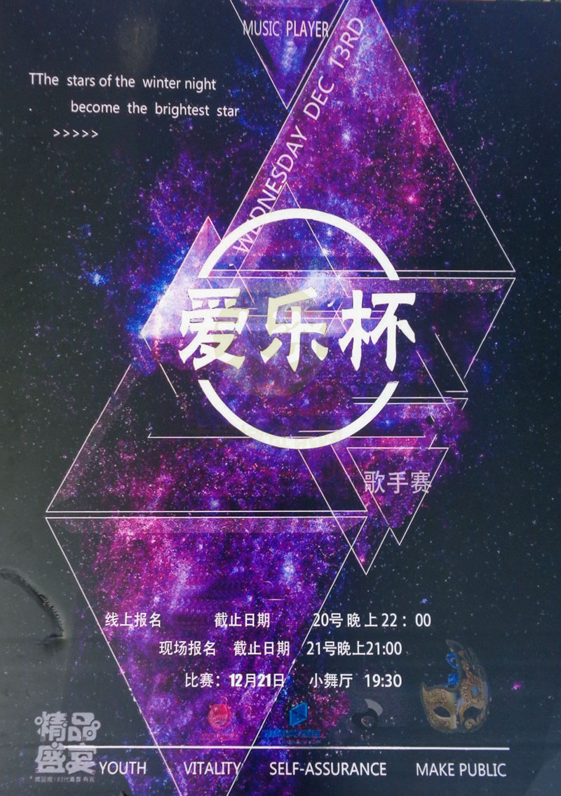 | 爱乐杯歌手赛决赛 12月21日 小舞厅 19:30 | ||||||