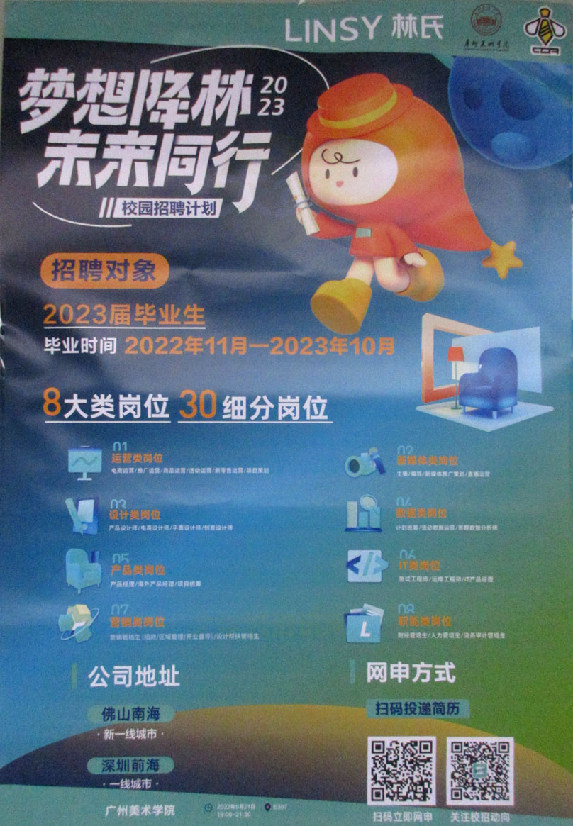| 梦想降林未来同行 林氏家居2023届校园招聘 宣讲会09.21周三19点-21点30分 教学楼E307 | ||||||