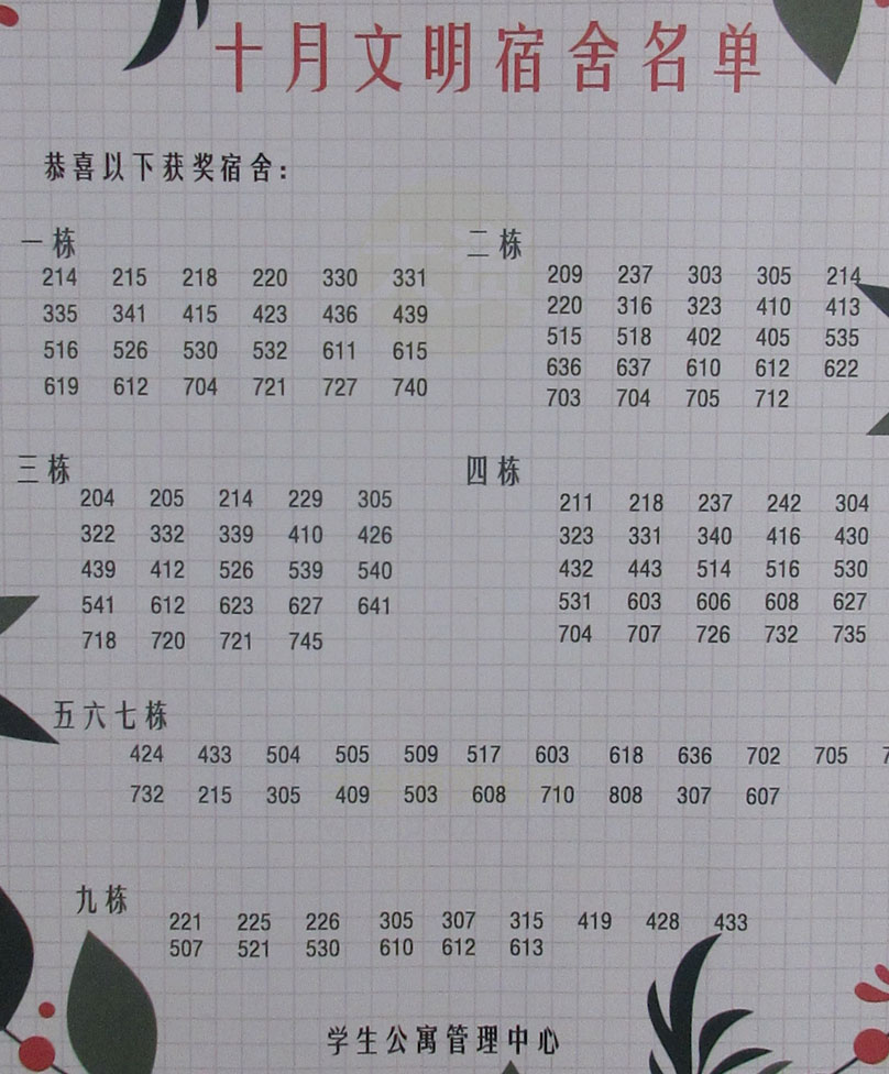 广美学生公寓·十月份文明宿舍名单公布 |