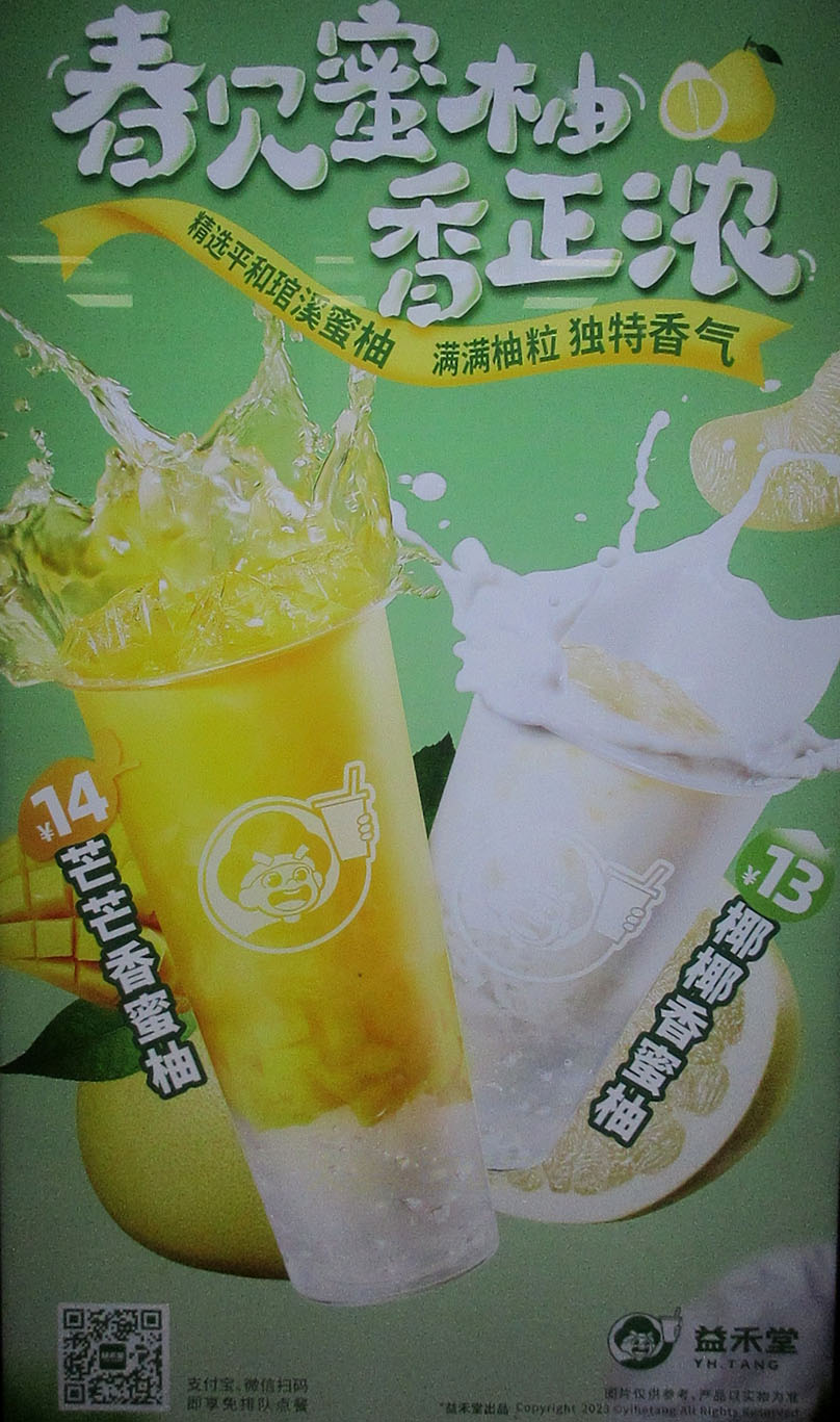 | 生活区1栋一楼 益禾堂 春季蜜柚系列 芒芒香蜜柚14元 椰椰香蜜柚13元 | ||||||