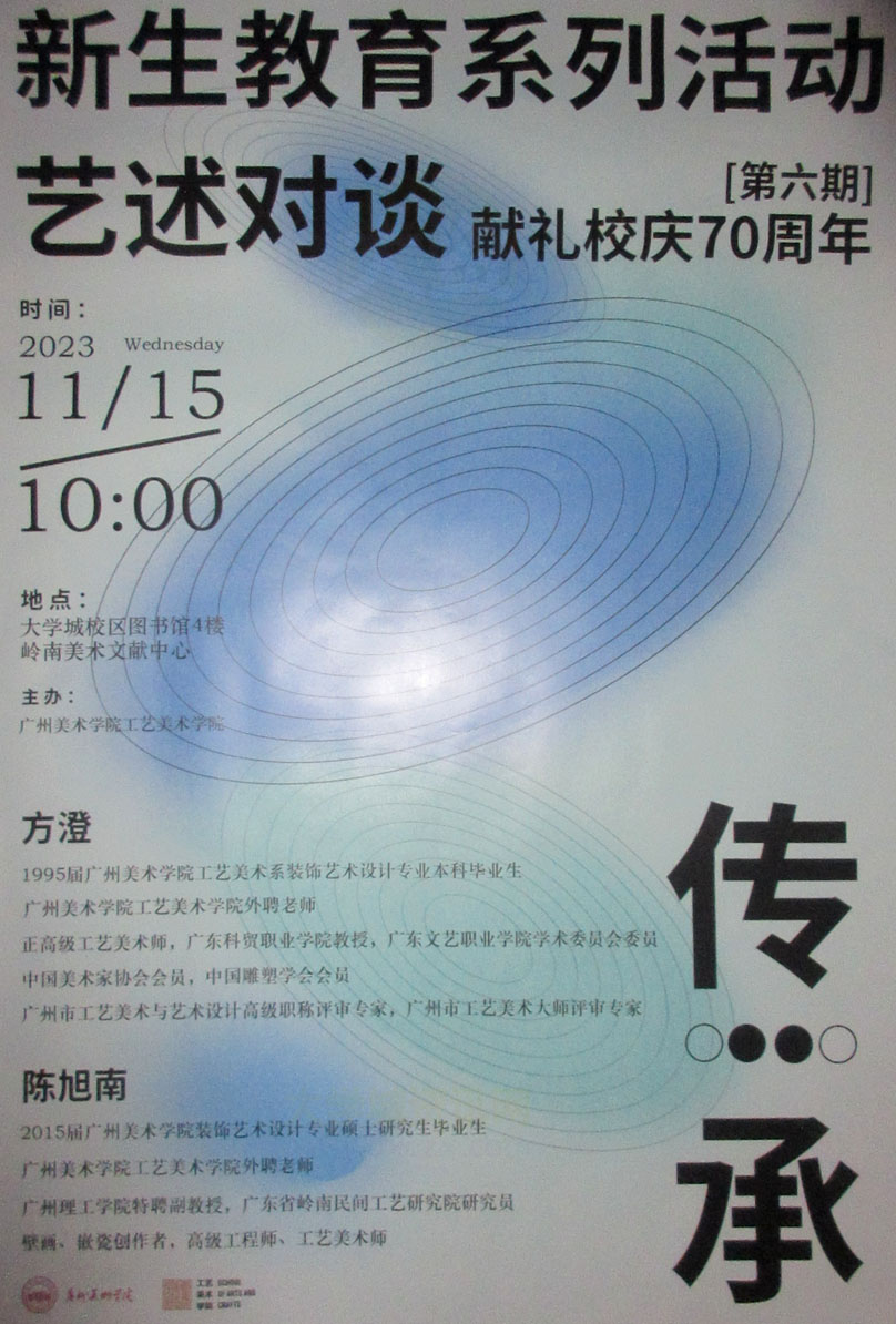 | 广美-工艺美术学院-新生教育系列活动 艺述对谈 2023.11.15周三上午10点 图书馆4楼-岭南美术文献中心 | ||||||