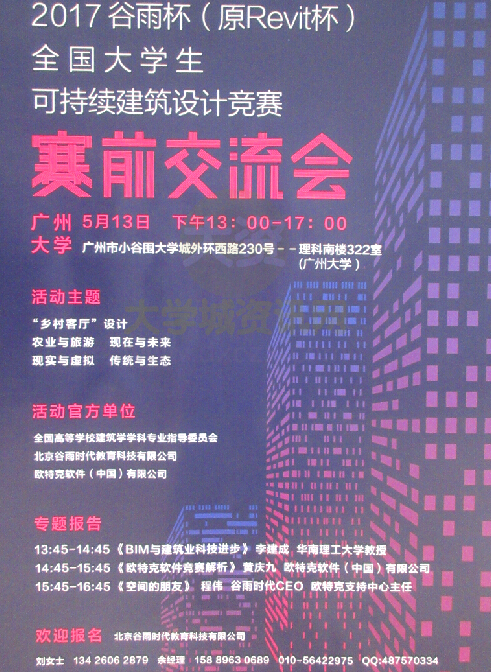 | 2017谷雨杯全国大学生可持续建筑设计竞赛赛前交流会 预告 | ||||||