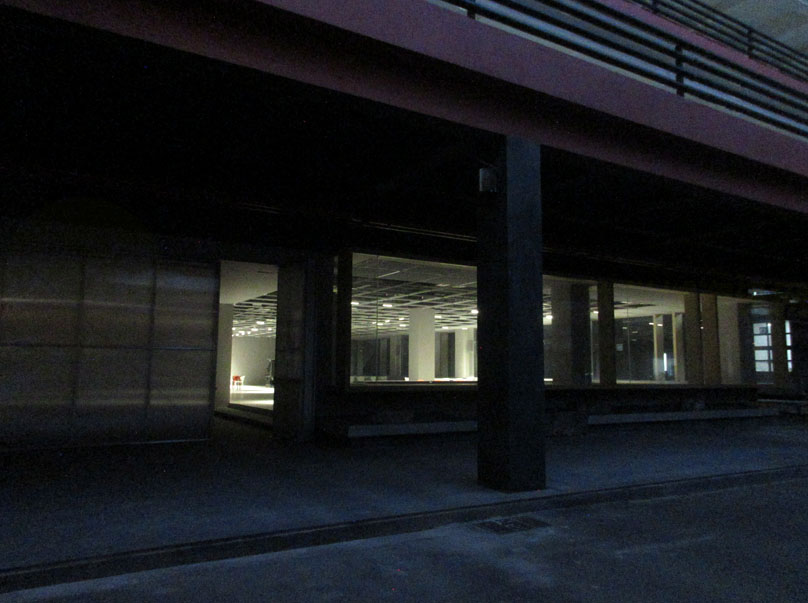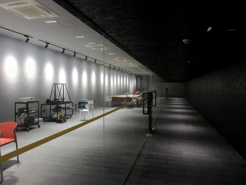 这个以前的影像馆重新装修后,现在看其里面的布置和摆设,似乎是不是已不再作影像馆了(或缩小到西侧还在没完成装修的倒梯形体空间才是?),有点像活动场地&会议场所&社团组织活动聚会等,又有点像自习室,甚至或创业空间之类;可能整体还没全部装修好或布置完成,大门外也还没看到具体标识名
