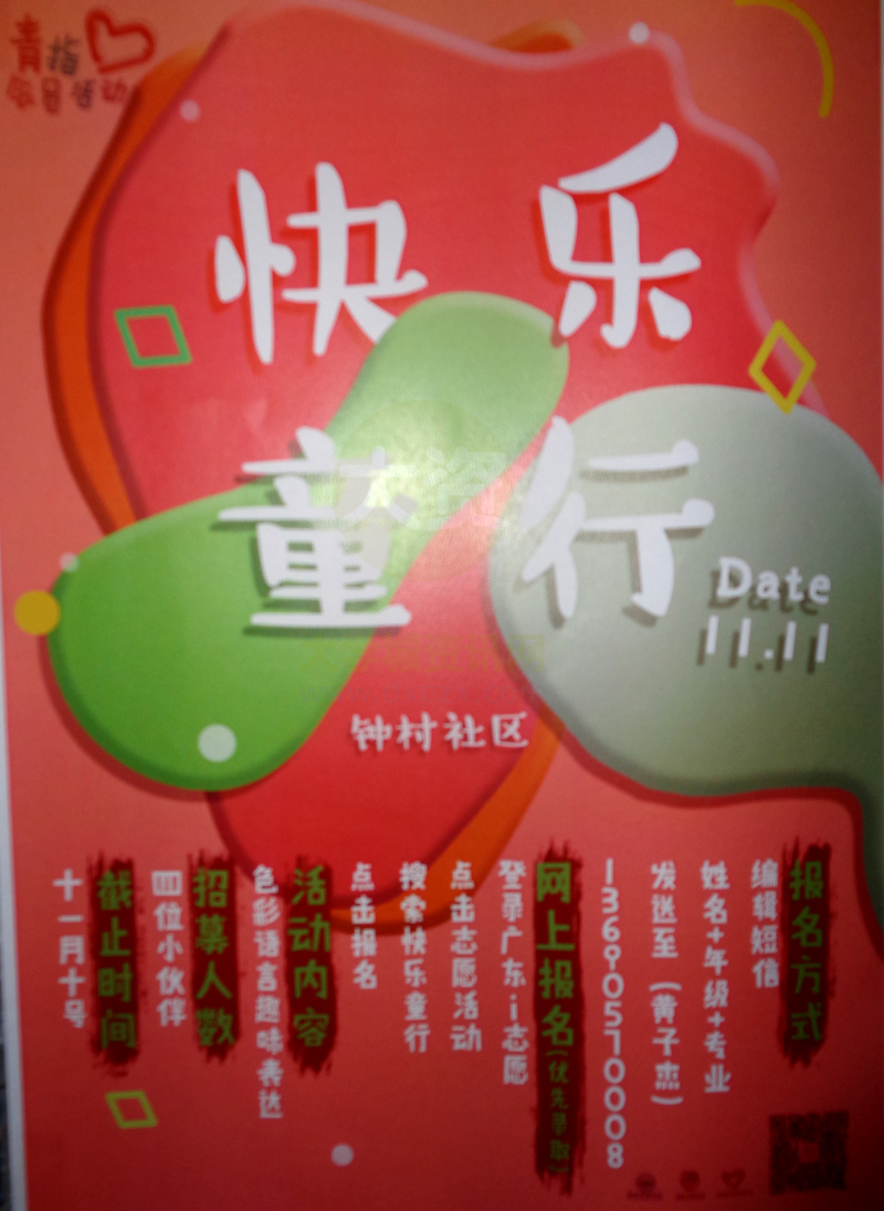| 青指会员活动 快乐童行 钟村社区 Date:11.11 报名招募成员 活动内容:色彩语言趣味表达 | ||||||