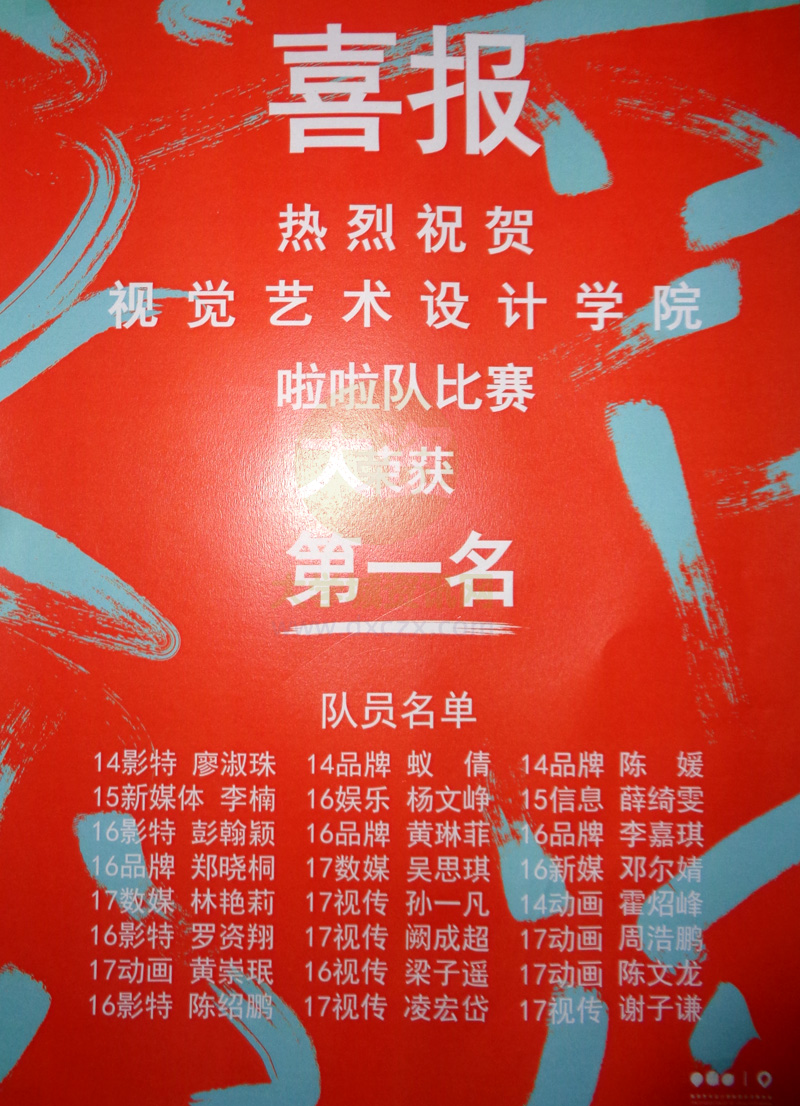 | 喜报!热烈祝贺视觉艺术设计学院拉拉队比赛荣获第一名(附名单) | ||||||