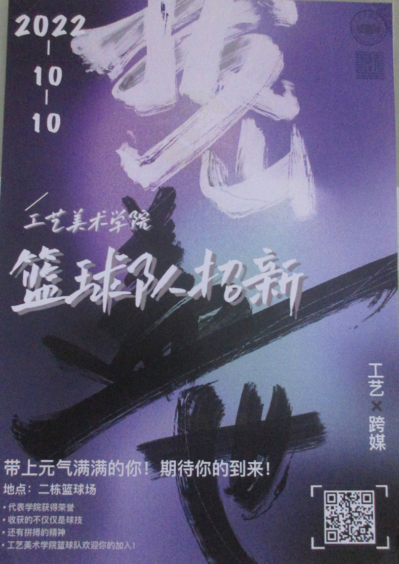 | 工艺&跨媒体学院联合篮球队招新 2022.10.10周一下午 二栋篮球场 | ||||||