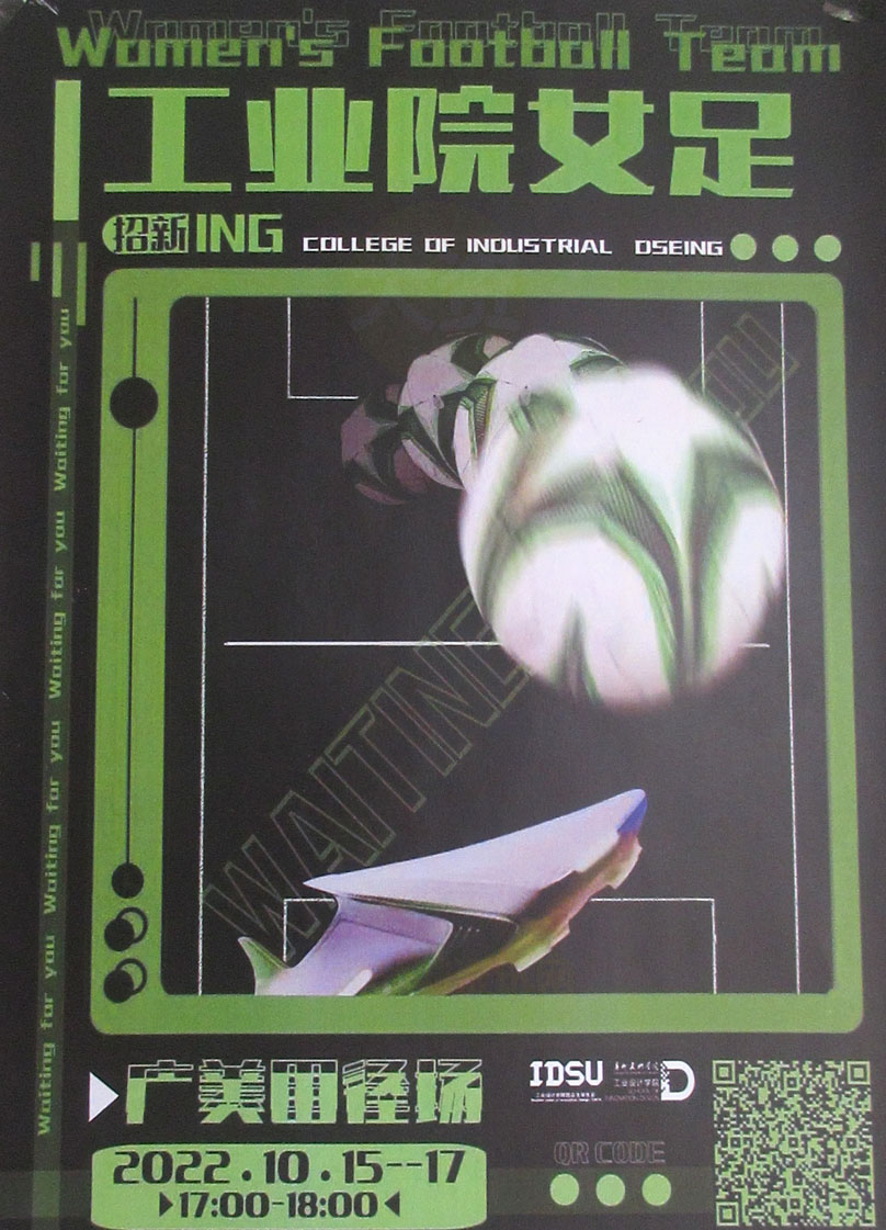| 工业学院2022女足招新 教学区田径场 2022.10.15-17 下午17点-18点 扫码了解更多 | ||||||