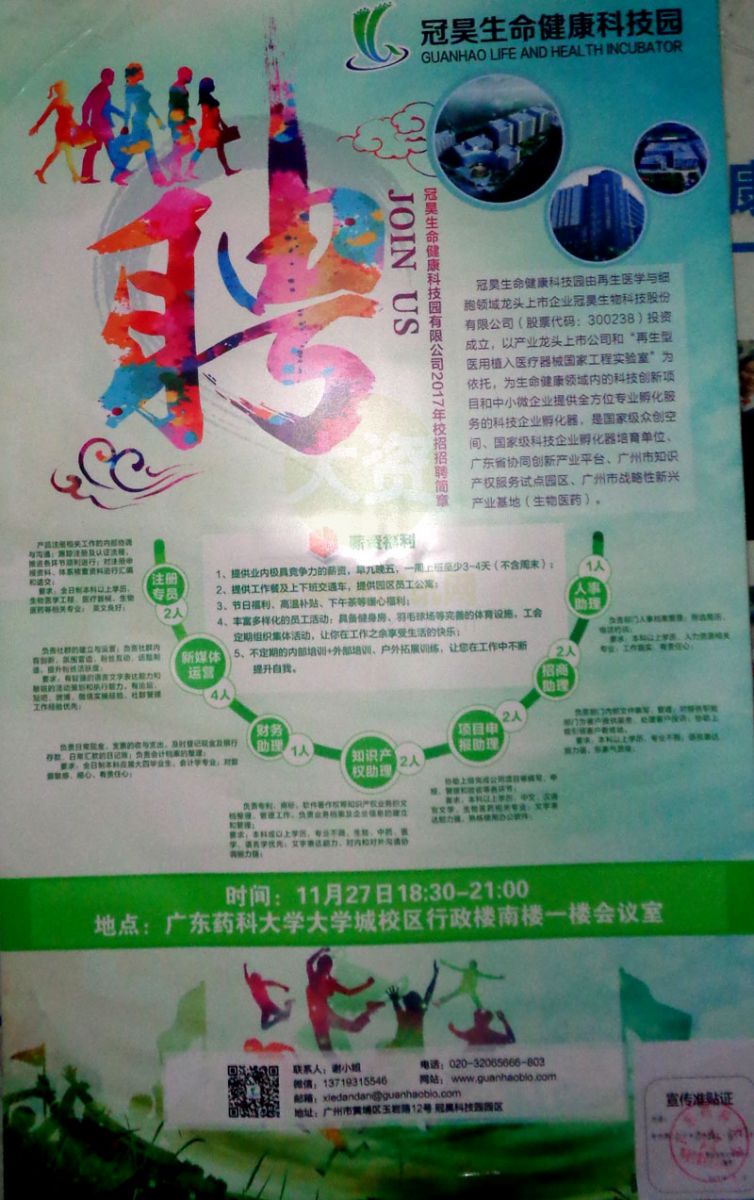| 冠昊生命健康科技园有限公司2017年校招招聘 | ||||||