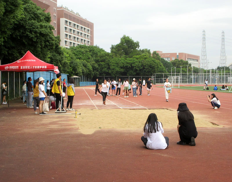 商学院第十三届田径运动会今天上午在教学区塑料草田径场进行,上午主要是进行了各项目的预赛