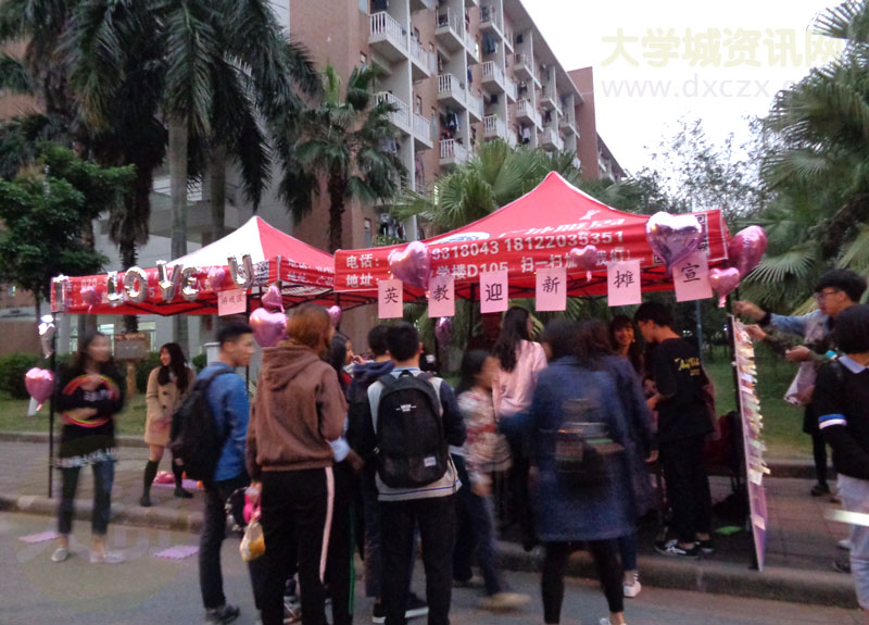 英语教育学院2017级迎新晚会摊宣正在生活区校道进行