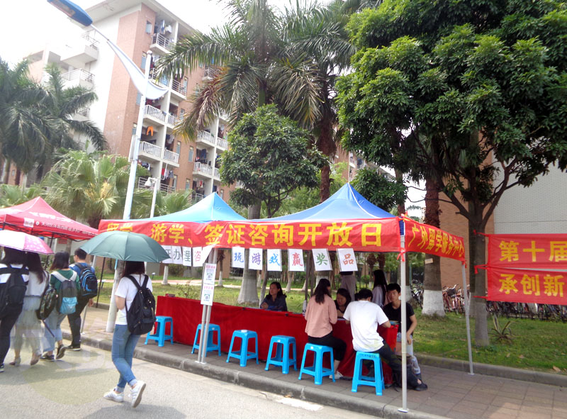 [广外留学服务中心]留学、游学、签证咨询开放日活动正在生活区校道展开