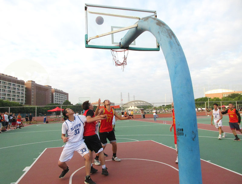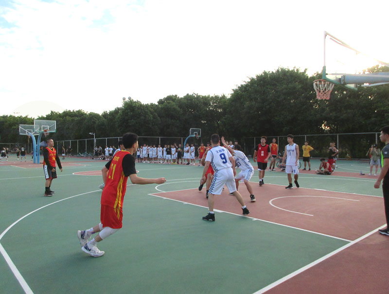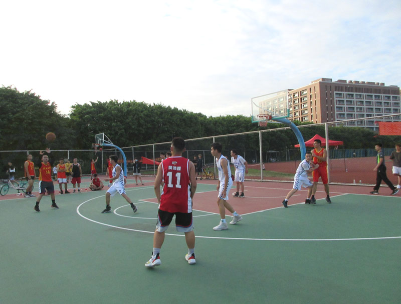 数统学院和经贸学院一场训练/热身/友谊赛正在教学区篮球场进行