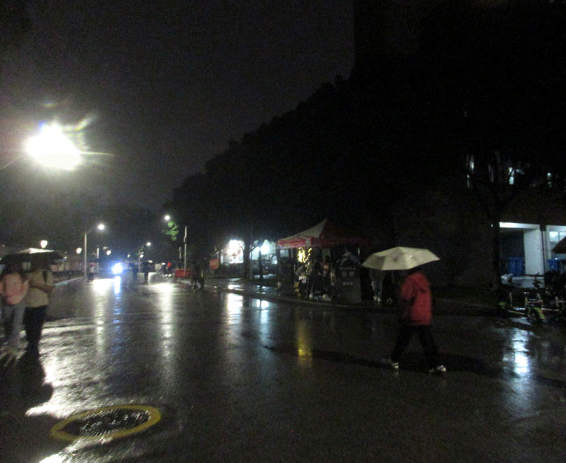 | 晚上近八点了,铱闪天文社的招新还在生活区校道进行,且还有些小雨水 | ||||||