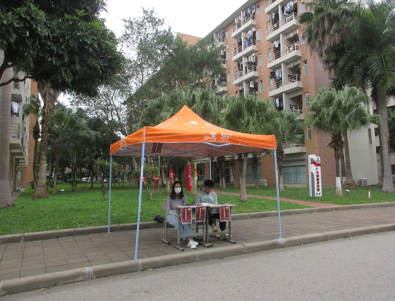 广外校史文化团队2022招新正在生活区主校道北苑3&4栋之间对出侧辅道进行