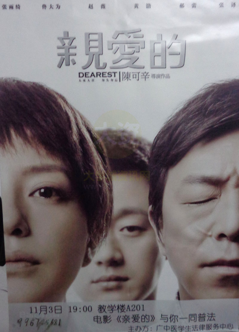 [电影放送资讯]电影《亲爱的》与你一同普法 11月3日晚19:00 教学楼A201