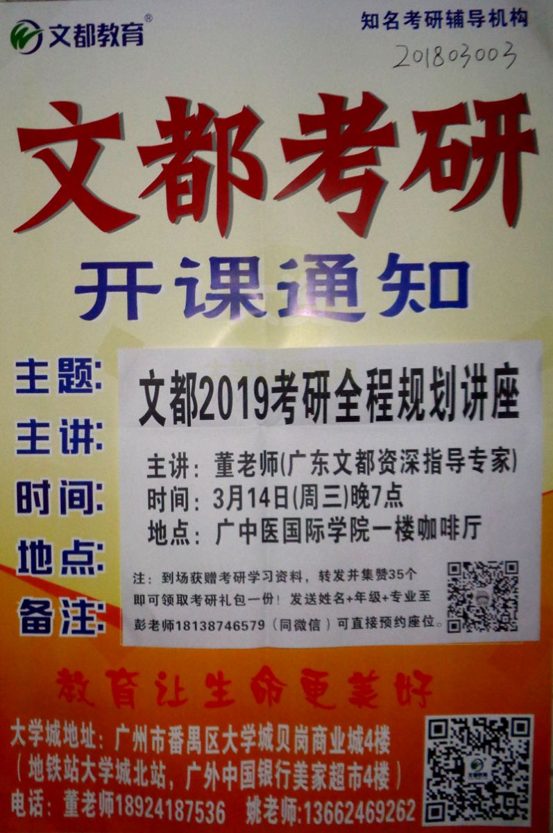 [考研开课通知]文都考研|2019考研全程规划讲座