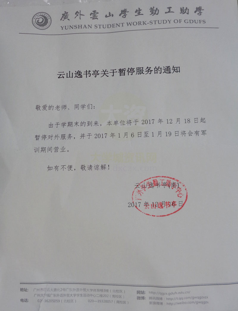 | 教学区-云山逸书亭关于暂停服务的通知 | ||||||