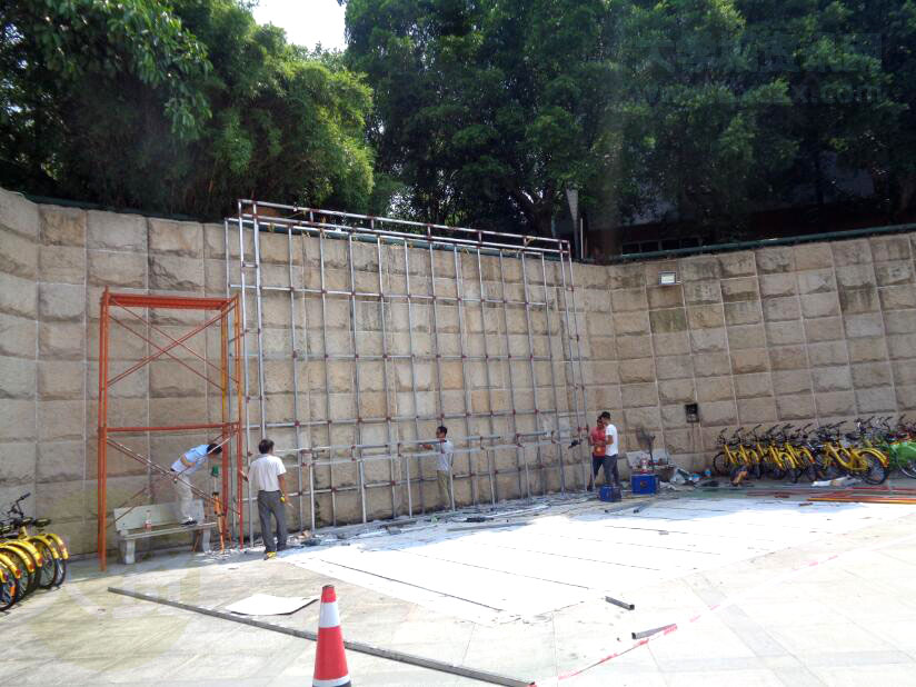 看样子有可能是一个大显示屏,或者一个舞台的背架?此处活动舞台似乎又小了点