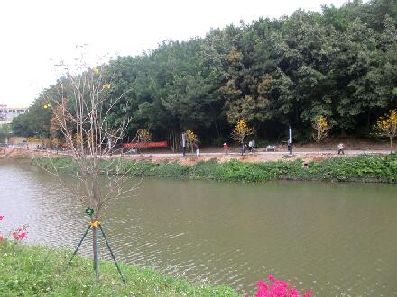 今天是3.12植树节 广工西区西湖涌沿岸边 恰看到有植树活动