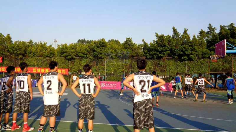 比赛场地定为大家熟悉的广工篮球场C区靠东北方位的四块场地,由于现在天色晚得快,所以比赛都比较早开始