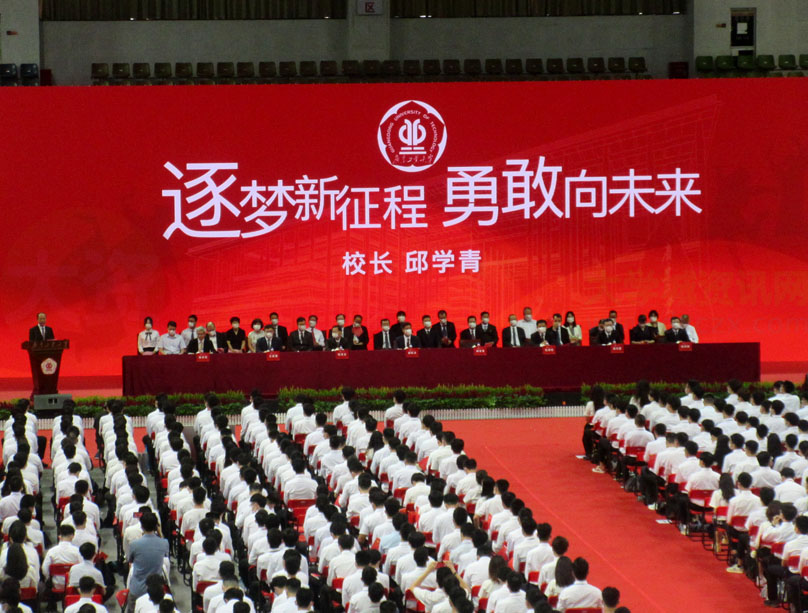 整个典礼都主要是按仪式、流程在进行,最后今年是第一届以唱校歌环节结束,校歌也是在上年底才创作有 |