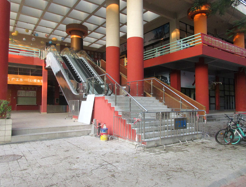 东区一饭西南角这个电梯看着是不是终于装好了 目前应该还没开放启用 就算没完全弄好,也是基本大概了 下学期回来可能就见到可以用了 加装了玻璃护栏后,这个引阶梯是不是也没显得那么高耸了,但始终觉得上个电梯还要走这么一段,终究还是费劲