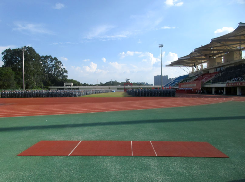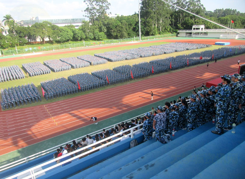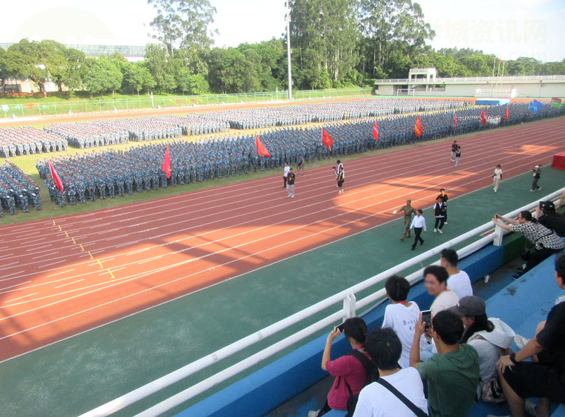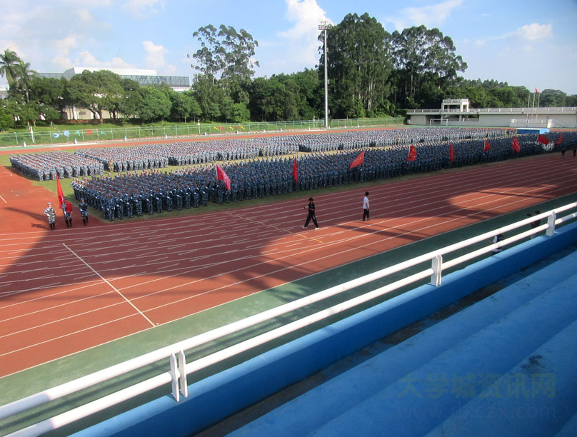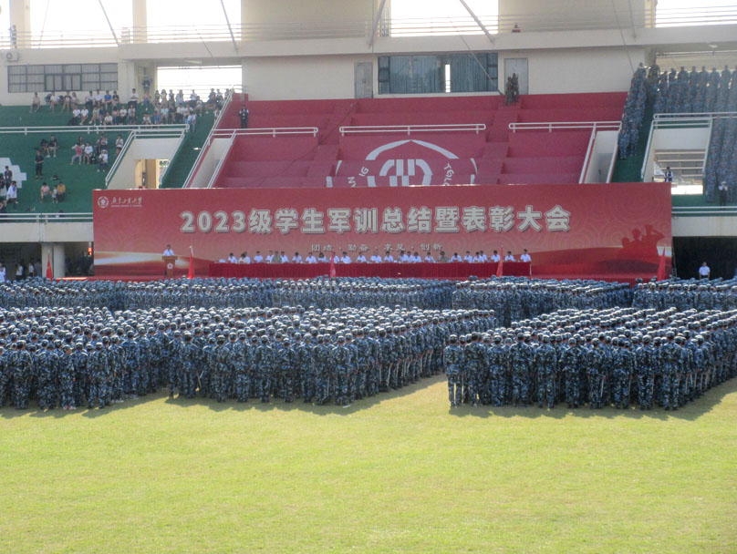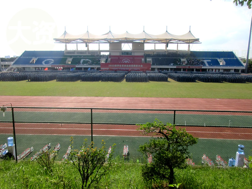 | 广东工业大学大学城校区2023级本科新生军训检阅总结大会今下午在教学区中心田径场展开进行 | ||||||