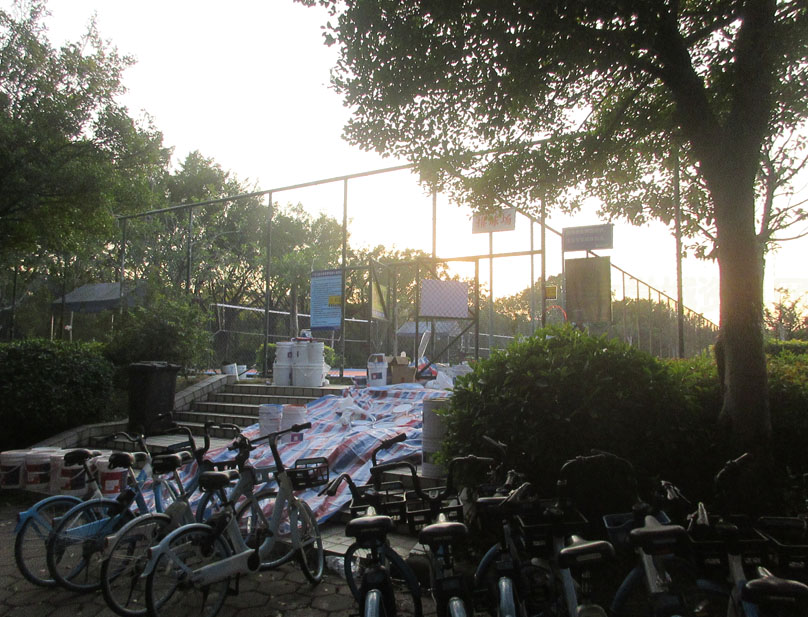 | 广工体育区西南 排球场看到好像在进行翻修升级改造施工作业 | ||||||