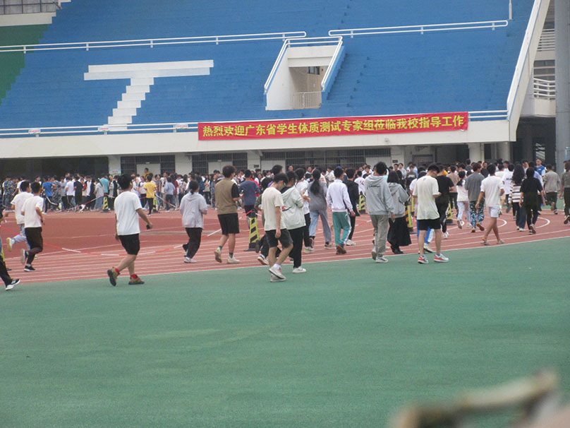 | 广工中心田径场 体质健康测试抽测 正在进行中 整个环形跑道 一圈圈的 都是人 | ||||||