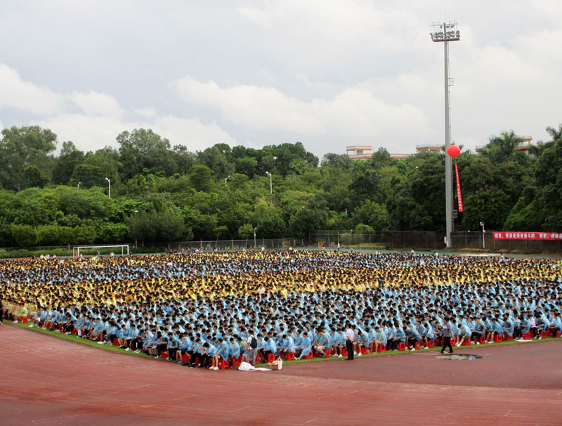 | 由于早上天色阴阴的有点想下雨 所以中心田径场所有新生都穿上临时雨衣 | ||||||