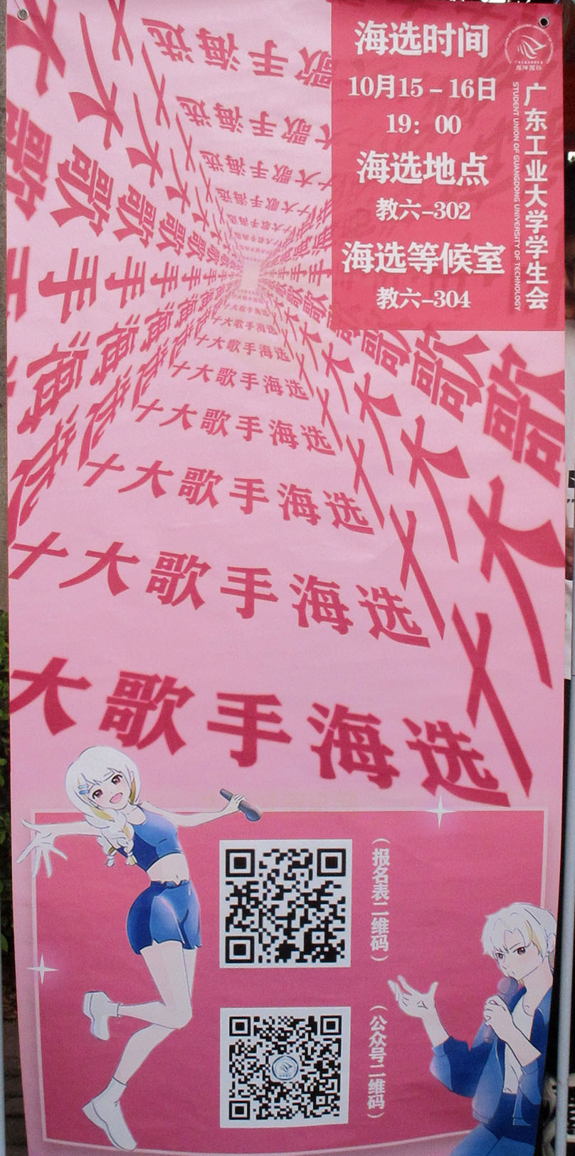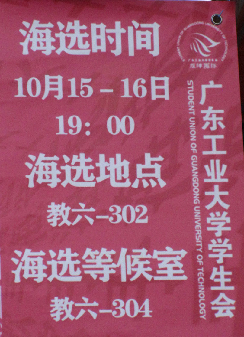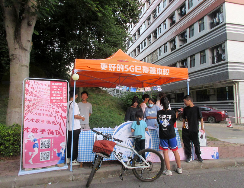 广工2022校园十大歌手比赛海选摊宣正在东区东11&12之间校道进行