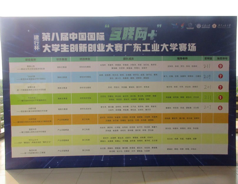 | 第八届互联网+双创大赛广工校赛第一天高教主赛道已经在教六南座二楼进行 | ||||||