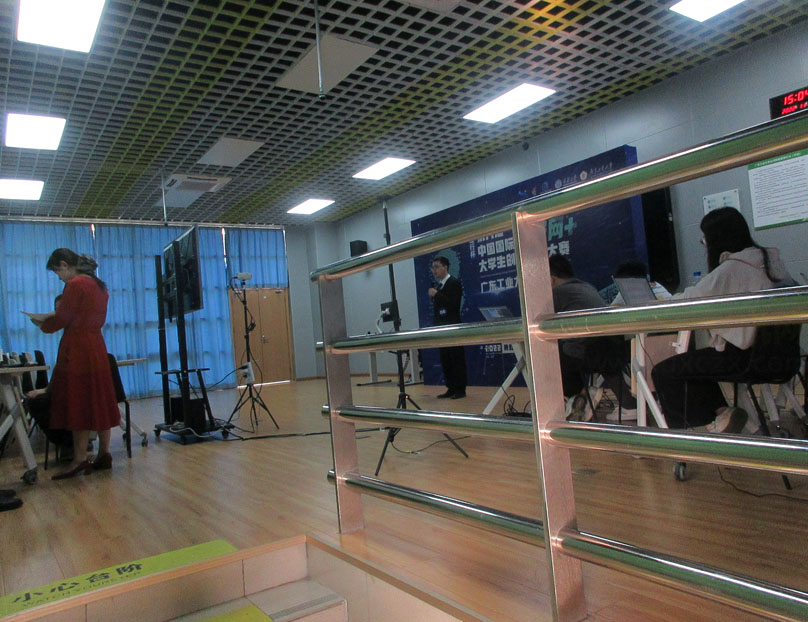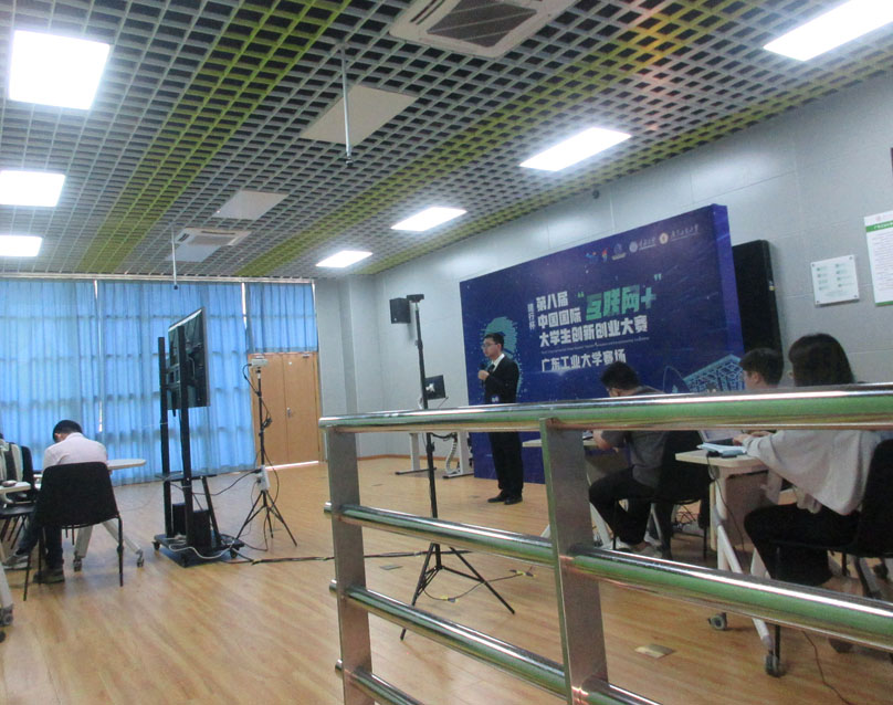 第八届互联网+双创大赛广工校赛第一天高教主赛道已经在教六南座二楼进行