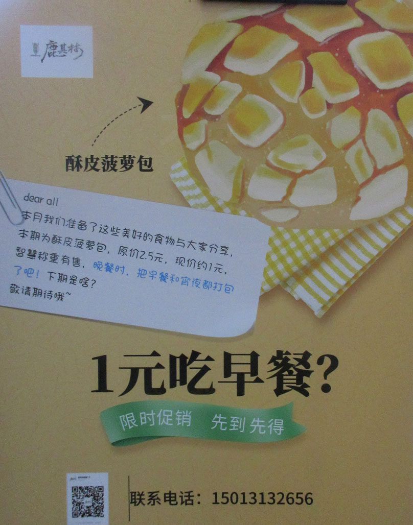| 西区四饭二楼鹿其林-新开-智慧称重区 新品酥皮菠萝包原价2.5元现价约1元 限时促销先到先得 | ||||||
