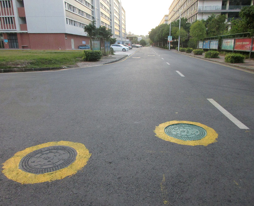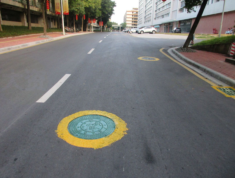 | 西区横向主干道及部分支道的雨水、污水沙井盖和排水筛盖等 专门圈涂油漆以示提醒 | ||||||