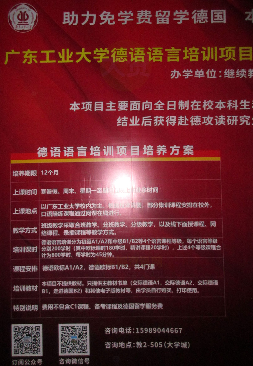 | 广东工业大学继续教育学院德语语言培训项目招生启示 | ||||||