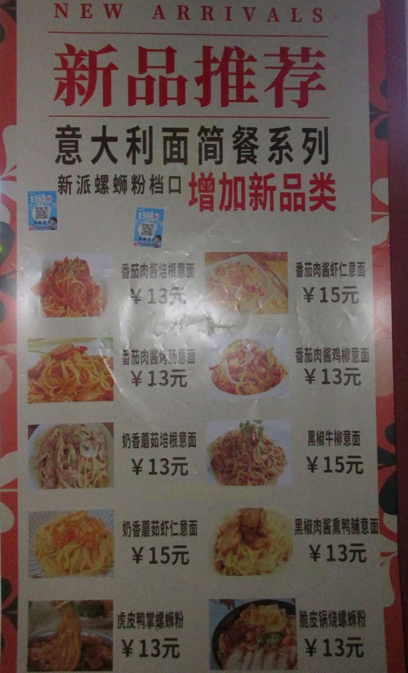 广工一饭一楼南列 新派螺蛳粉档 新增意大利面简餐品类