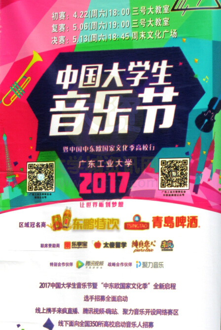 | 中国大学生音乐节广工站周六晚周末文化广场响起 | ||||||