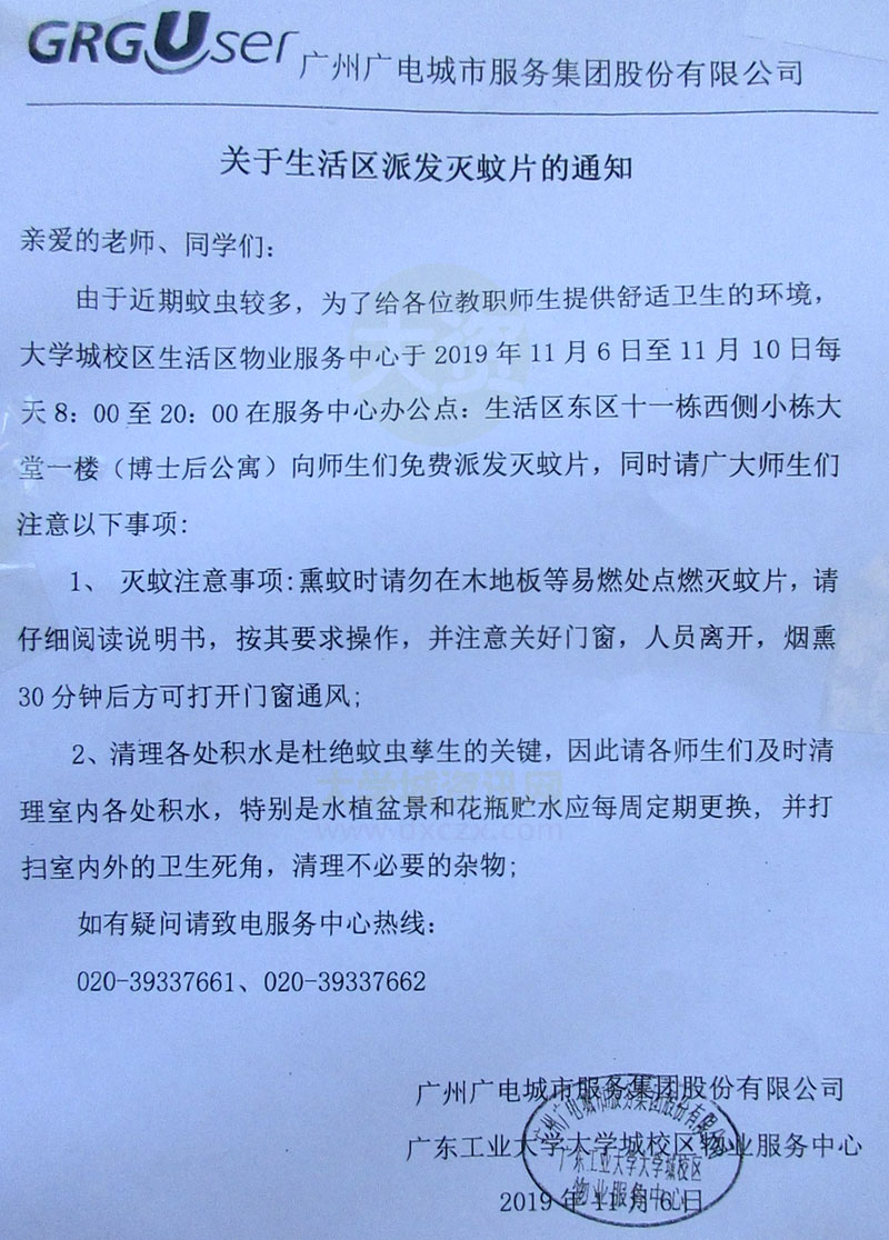 | 广电物业?生活区派发灭蚊片通知 | ||||||