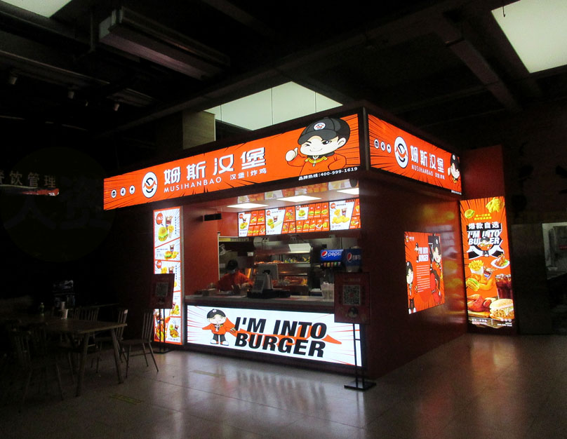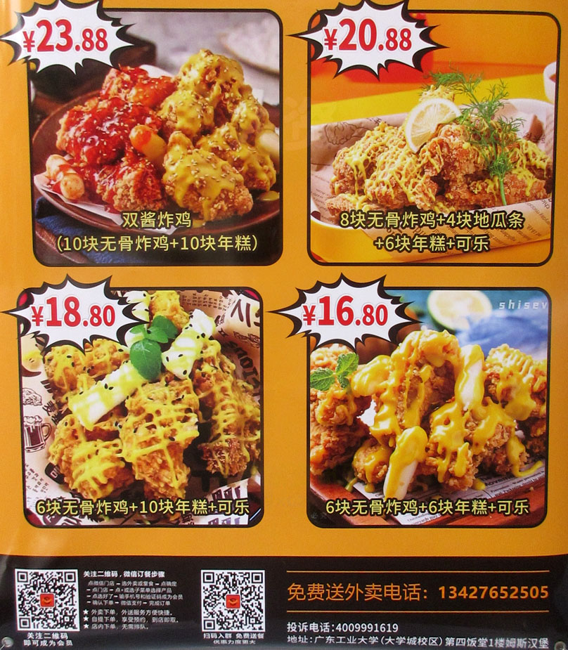 | 西区四饭一楼内东北角楼梯南侧-本学期新开的姆斯汉堡店 韩式炸鸡 新品上市 | ||||||