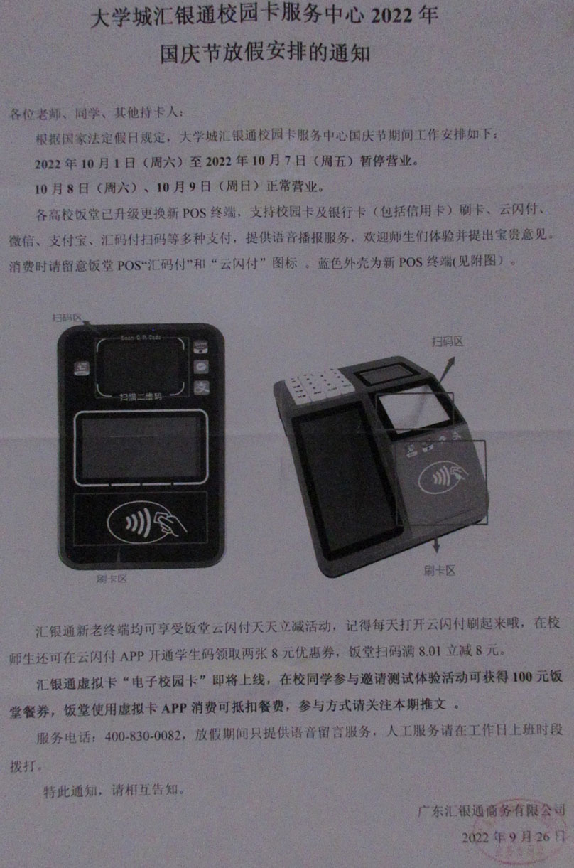 汇银通校园卡服务中心2022年国庆节放假安排通知 |