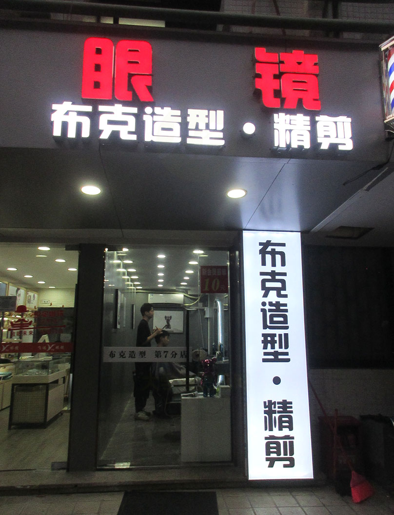 广工西区-西7栋南列中 早前看到的飞达眼镜原店内空间右侧隔出的挺窄的部分 现在看到已经新装好了是做理发店 看店名大概就是长栋教师公寓楼下的布克造型开过这里来的分点或小二分店,当然是考虑到这边这段才更加是广工西区的主活动路段&中心位置 不过看着这店面横向宽度确实是有些狭窄